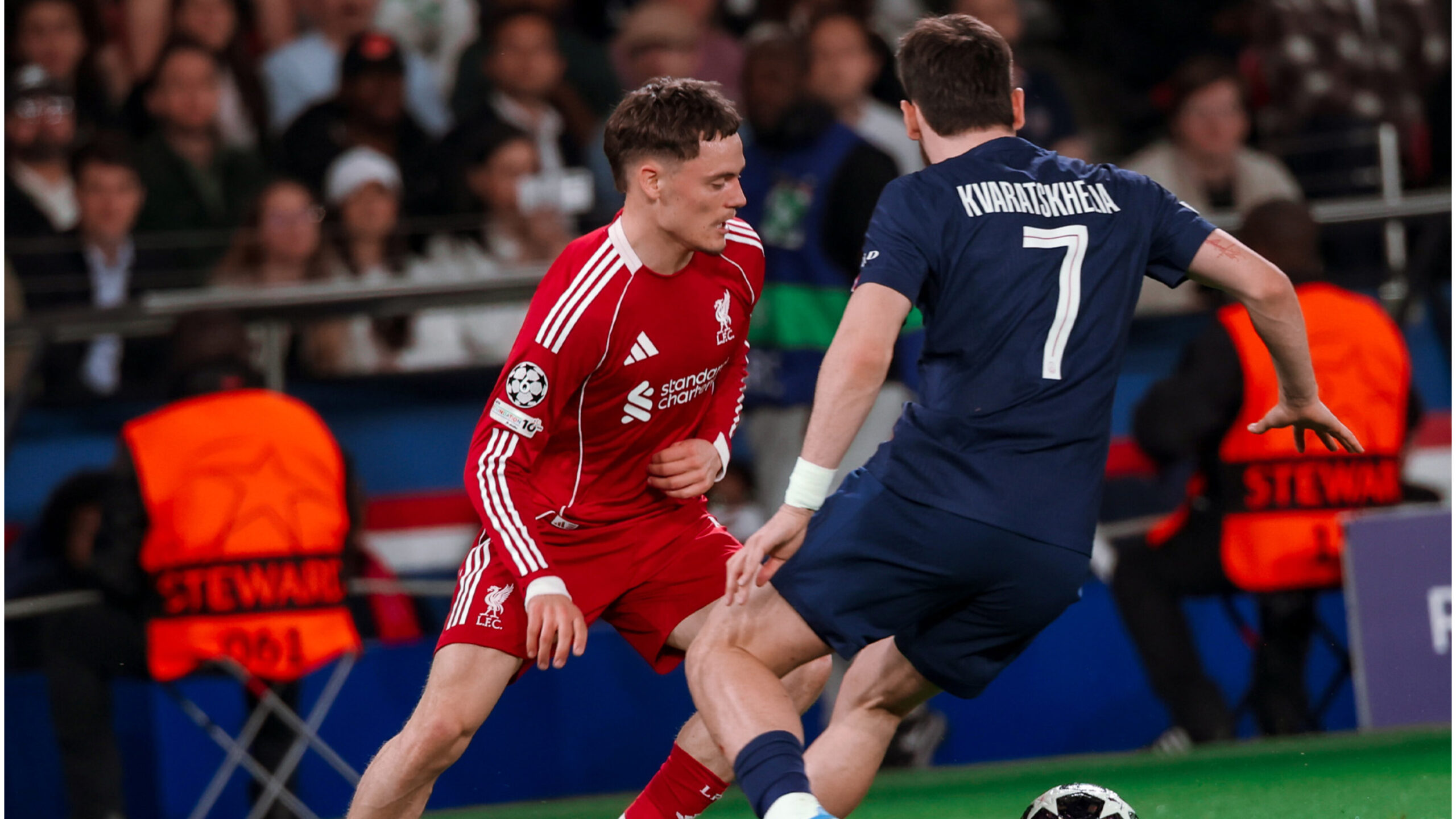 Ultra dominateur dans le jeu (74 % de possession, 18 tirs contre 3), le PSG a étouffé Liverpool, incapable de cadrer la moindre tentative durant toute la rencontre. Malgré quelques interventions défensives solides des Reds, les hommes de Luis Enrique ont continué à pousser, se procurant plusieurs occasions franches sans parvenir à faire le break avant la pause.